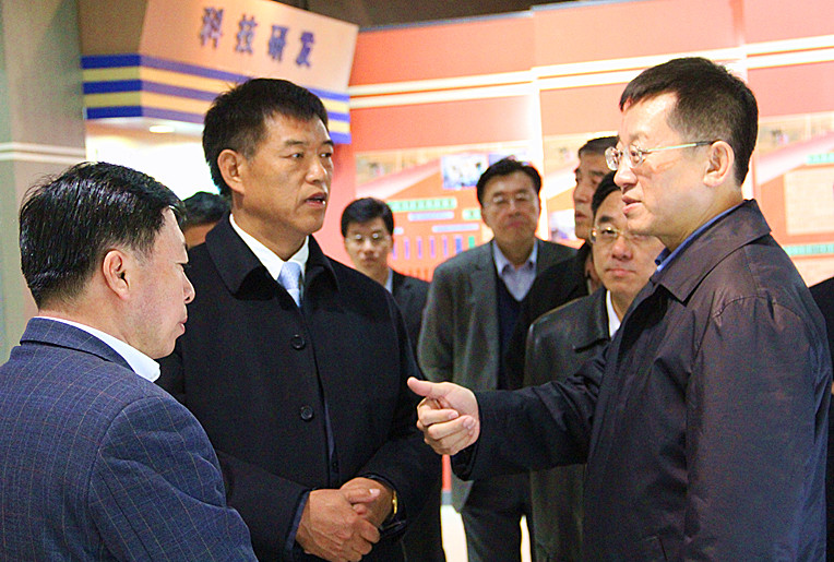 在展馆二厅,谷春立问董事长企业现在有什么困难需要帮助解决,听到集团配齐检测设备困难,有的设备长年闲置时,谷春立表示可以采取企业投 入,政府支持的方式建立公共检测平台,实行有偿服务。并当即指示随行的省直有关部门领导和市长田玉林,要帮助修正做好平台建设,支持企业发展,减轻企业负 担。