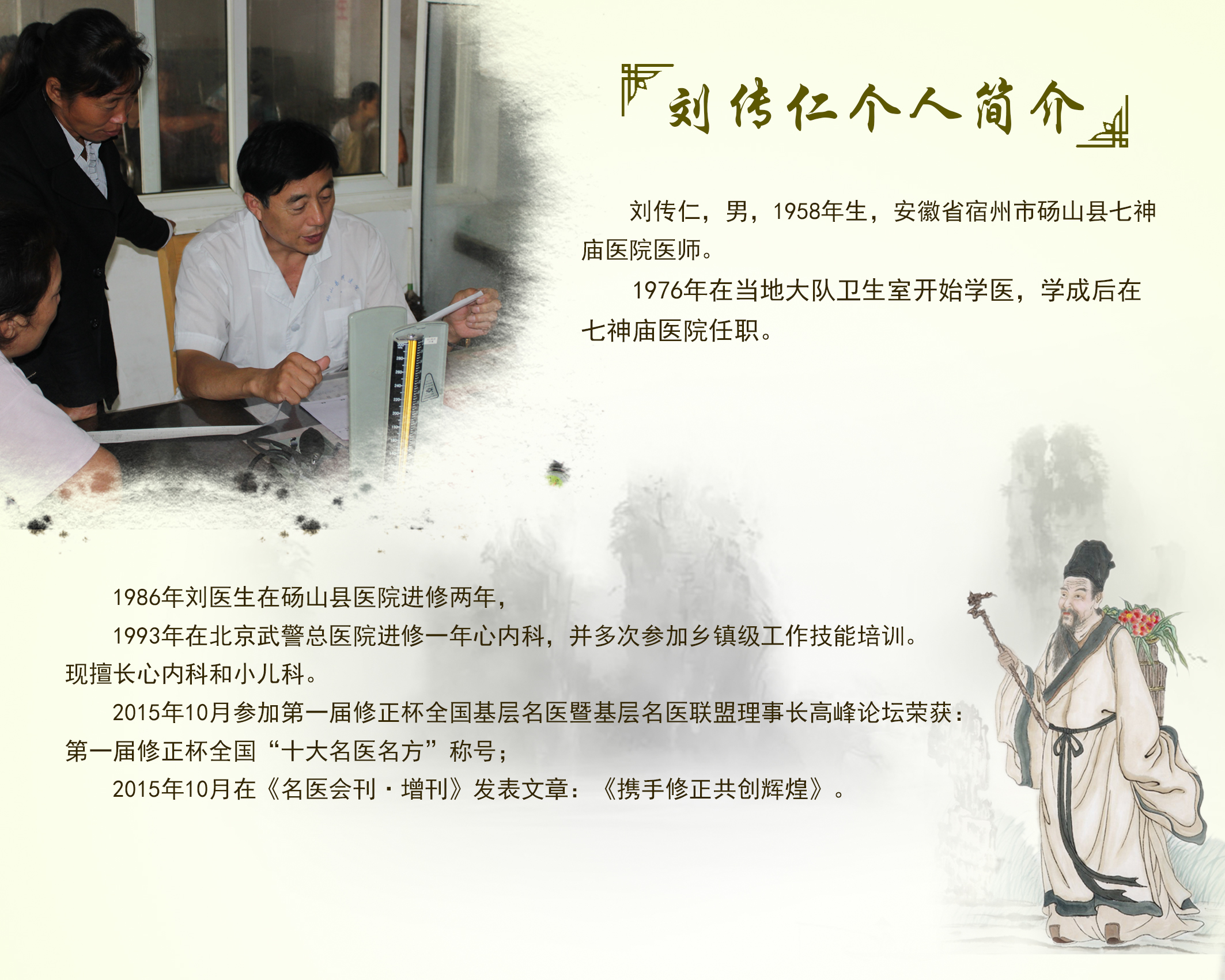 首先做下自我介绍:我,刘传仁,砀山七神庙医院的一员。和修正的缘分,还要从 16 年前(2001年-2015年)说起。我们卫生室是2012年开始接触修正精芪双参胶囊的,第一次也不了解精芪双参胶囊这个产品,也不敢使用。后来修正业务员杨总接连去我那五次我都没有理会他,还是后来我弟弟总是看到他,才决定和他聊聊的,就这样在第七次我看了他的产品,最后我要了1件也就是200盒精芪双参胶囊。用了这一件之后,它的效果就真的出来了,很多客户就过来反应这个药不错。自此也有了第二次的10件 ,到现在的一次进货120件。修正的精芪双参胶囊在我们这卖的这么好,走的量这么大,源于修正产品的质量、客户的需求。我这边因为精芪双参胶囊受益的人太多,举两个病例来说一下:
