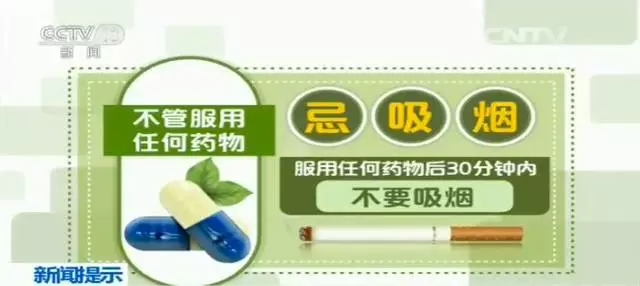 烟中含有的烟碱会加快肝脏降解药物的速度,服药时吸烟会导致血液中的药物浓度下降,使药物药效难以充分发挥,所以在服用任何药物后的30分钟内都不要吸烟。