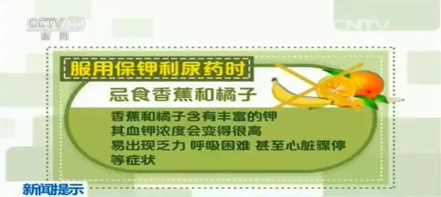 服用保钾利尿药时忌食香蕉和橘子,由于香蕉和橘子含有丰富的钾,其血钾浓度会变得很高,易出现乏力、呼吸困难,甚至心脏骤停等症状。