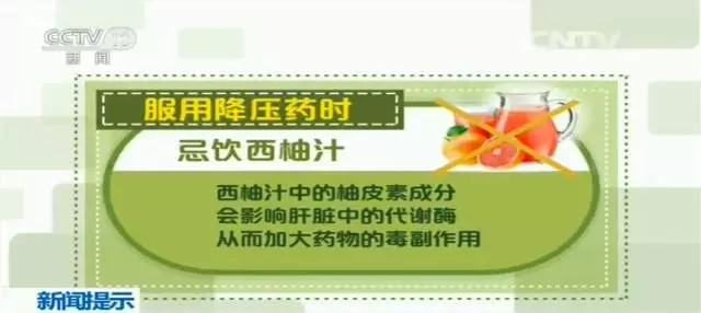 服用降压药时忌饮西柚汁,因为西柚汁中的柚皮素成分会影响肝脏中的代谢酶,从而加大药物的毒副作用。